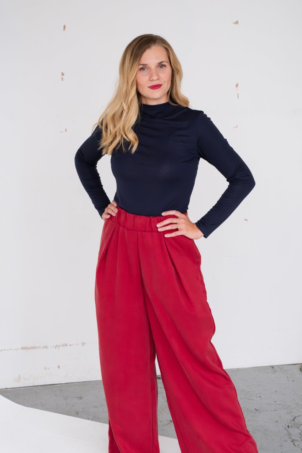 Pallazzo kalhoty Giselle pro milovnice širokých kalhot, které budete zbožňovat a nosit všude, tak jako já. Vycházejí z osvědčeného střihu Estelle, pro který se tak rády vracíte, jen jsou střihově upravené, aby fungovaly i jako dlouhé. Nosí se jako pasové a přes boky jsou volné.